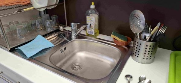 La nouveauté du jour : on nous a enfin posé l'évier dans le coin cuisine... les