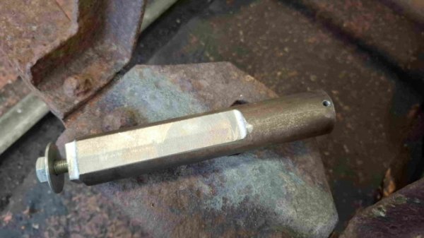 filetée qui viendra passer dans les attelages du locotracteur tandis que sur la