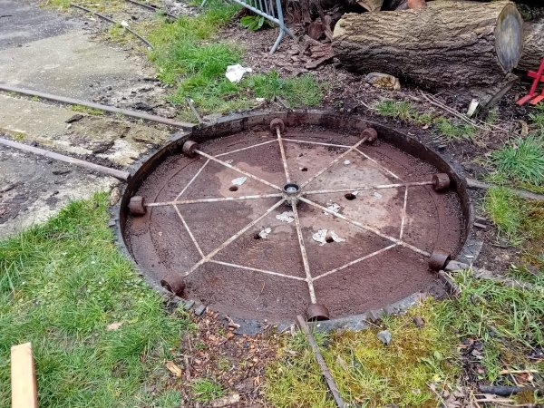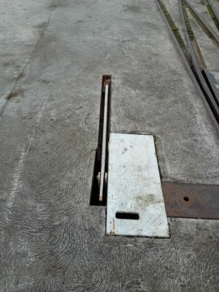 Le levage de la plaque de 330 Kg. à l'aide de la chèvre découvre le cuvelage et