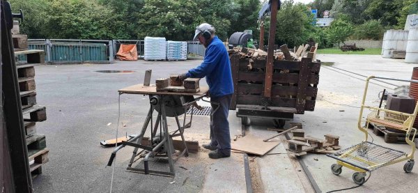 Grosse activité de la journée : la découpe de bois d'allumage en vue de nos