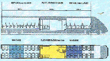Innovations : avec son carénage et la ligne générale des deux éléments les désigners ont réussi à créer un autorail aux formes et aux couleurs modernes correspondant tout à fait à l'ère ferroviaire du TGV. Les formes de la caisse permettent d'exploiter au maximum le gabarit autorisé en largeur. La ligne de baies vitrées continues offre une vision panoramique de chacune des places assises. Les plates formes d'accès central surbaissées facilitent l'accès aux personnes à mobilité réduite.