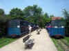 14h00, nous attelons notre rame historique constituée d’un plateau Pechot, une citerne et un plat Decauville, soit trois wagons à