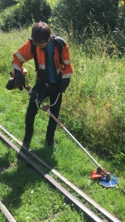 - taille des arbustes et des herbes qui envahissent la plate-forme, viennent gêner les passagers et rayer la livrée des baladeuses tout nouvellement repeintes... (photo Michel G.)