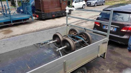 Sitôt débarqués, les essieux sont remontés sous le châssis de Jeanne.