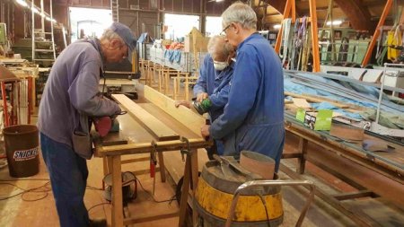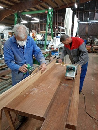 - à l’atelier bois, Jean-Paul, Jean-Pierre et Philippe sont en plein travail de ponçage des sièges et des marchepieds...