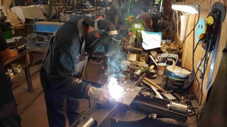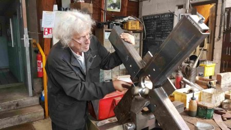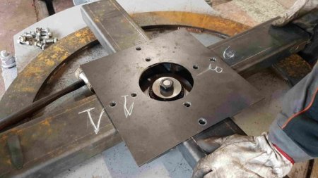 Jean-Pierre effectue la soudure du siège du roulement sur le support tournant ...