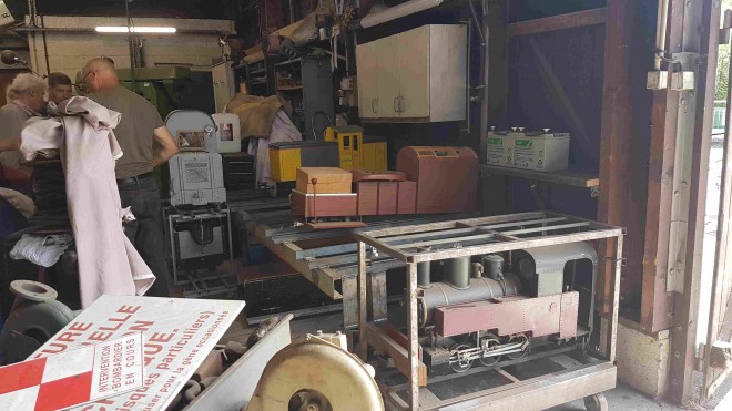 ... tandis que Jean-Pierre met un point final à son travail de rangement des engins moteurs du CFC miniature en installant son rack à l'emplacement convenu : les matériels seront ainsi bien rangés de façon accessible et sécurisée, en dehors des passages et des zones de travail.